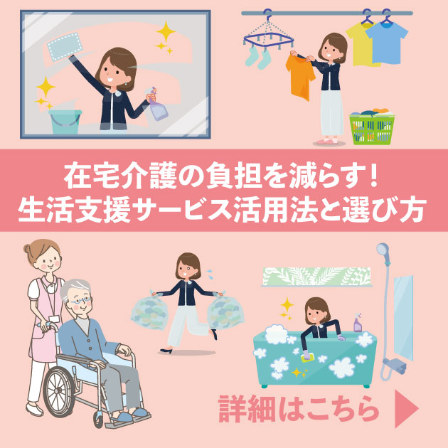 在宅介護では、食事の準備や掃除・洗濯などの家事が大きな負担になります。