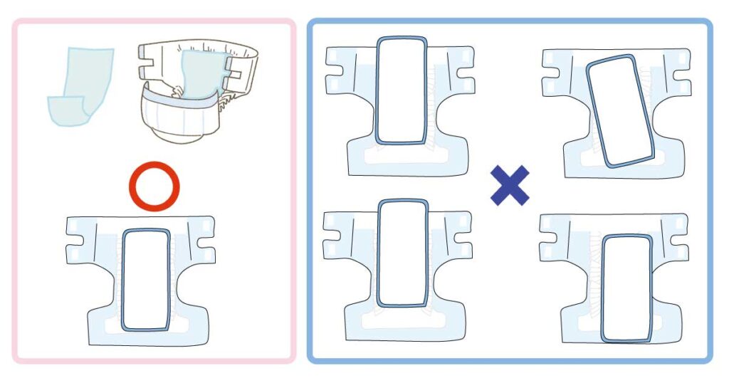 漏れやすい状態にしないためには、尿漏れ対策として、パッドの位置を確認することがとても大切です。