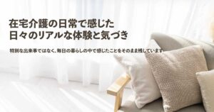 在宅介護の日常で感じた、日々のリアルな体験と気づき このページについて|体験の入口として このページは、在宅介護の中で実際に体験してきた出来事や気づきをまとめた入口ページです。 介護の方法や制度を説明するページ...