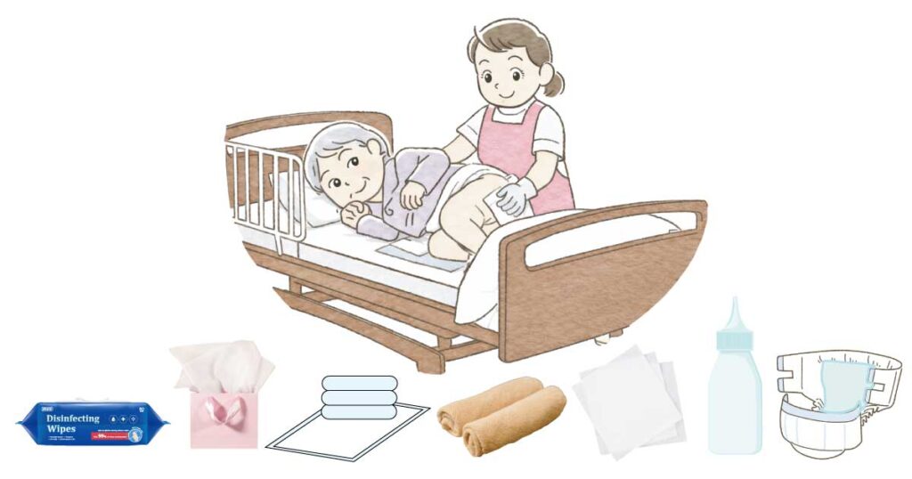 - 新しいおむつ・手袋・清拭用品
